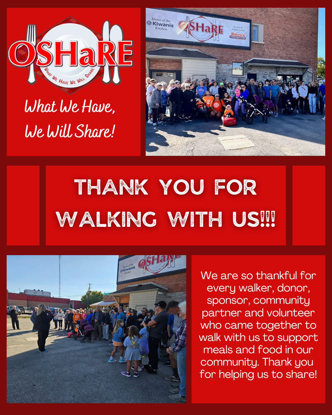 We are so excited to launch our Walk for OSHaRE 2025. Come walk with us to raise awareness and support meals in our community! We are so excited to launch our Walk for OSHaRE 2025. This is our biggest fundraiser of the year. Please consider joining us to walk and...